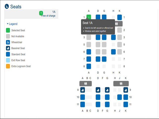 خدمات دیگر: غذاهای ویژه، ویلچر، حیوانات خانگی در کابین/بار، انتخاب دستهصندلی.